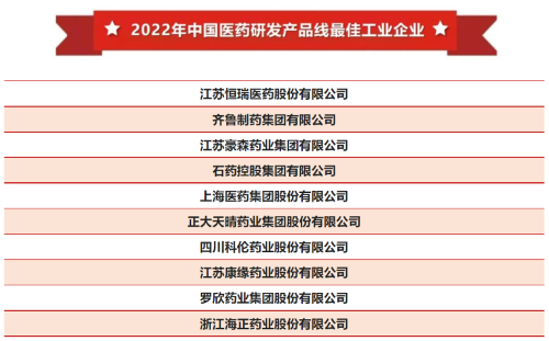 稳居榜首!AG亚游医药再次登顶“中国医药研发产品线最佳工业企业”